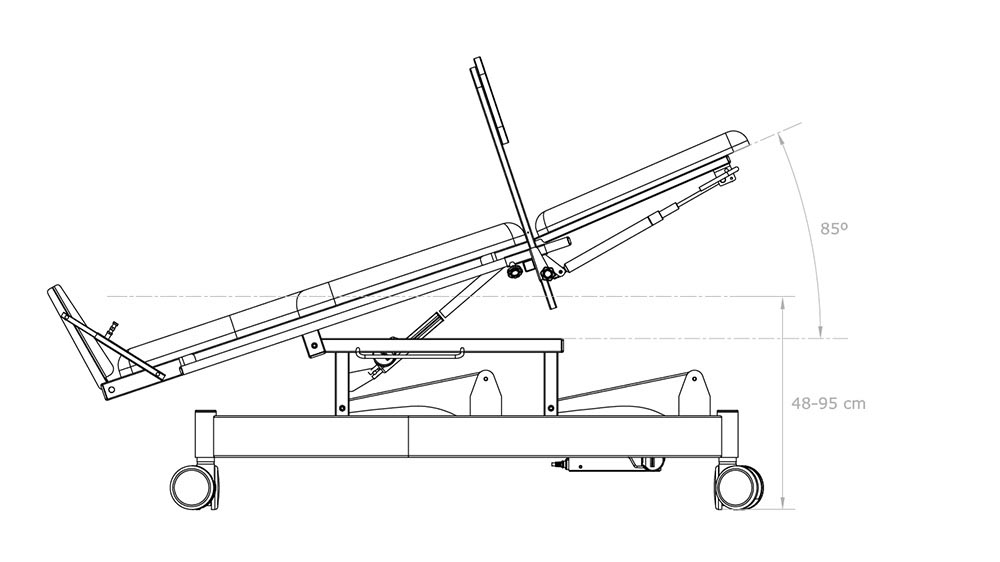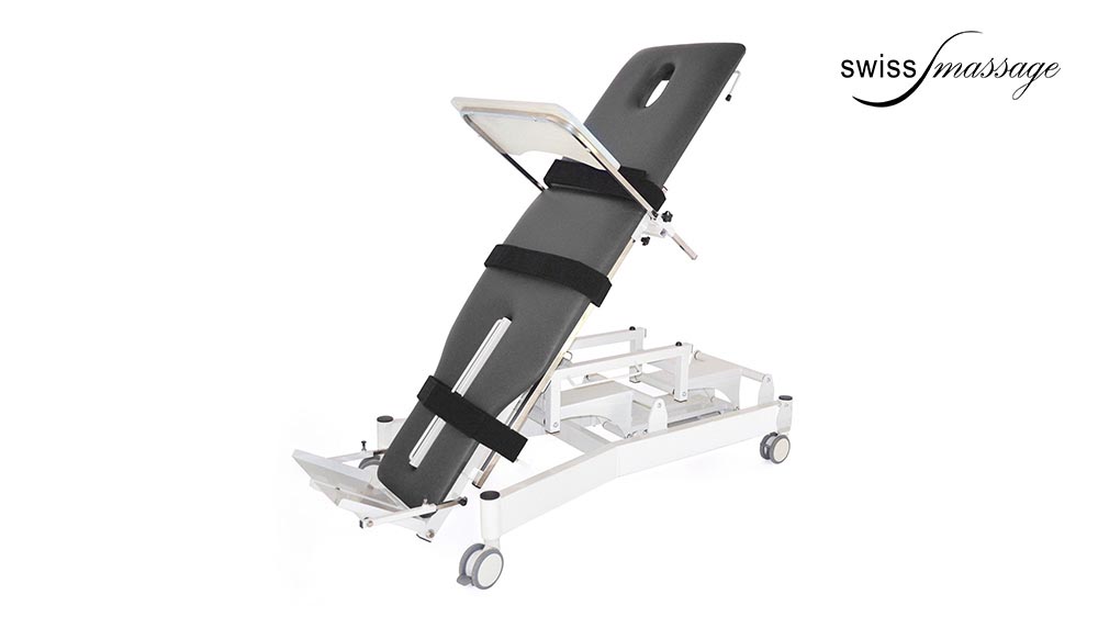 2-plane electric tilt table with backrest and 2 motors for height and tilting.