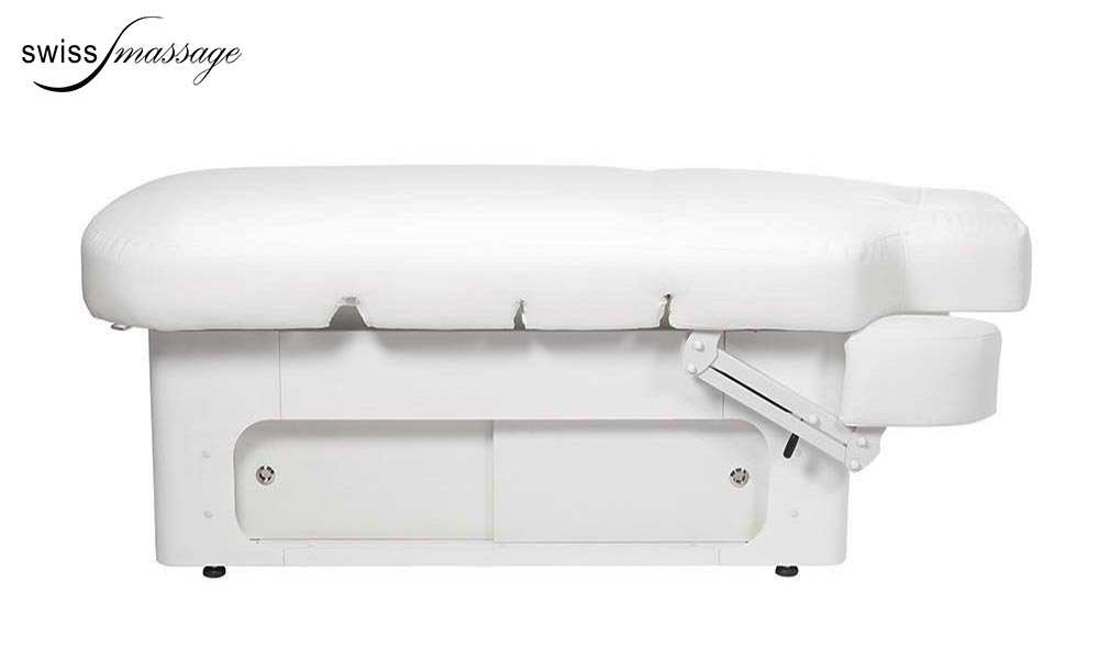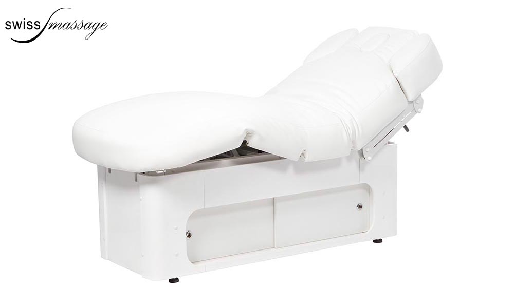The soft white polyurethane upholstery ensures optimal comfort, while the backrest with face hole and adjustable armrest provide a comfortable position in the prone position. The special extra-comfort foam guarantees optimal support for the customer’s body.