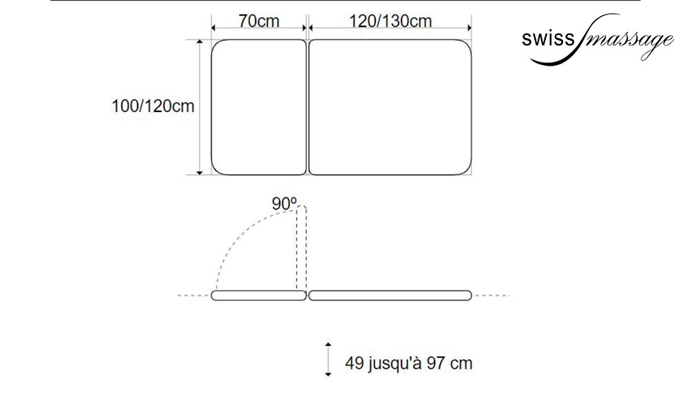 Table de soins Bobath extra-large sur mesure montée hydraulique 2 plans  modèle CH-Bobath-2120-R
