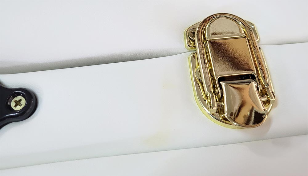 Un problème survenu lors de la fabrication a causé des petites marques de couleur dorées sur certains emplacements des revêtements blancs.