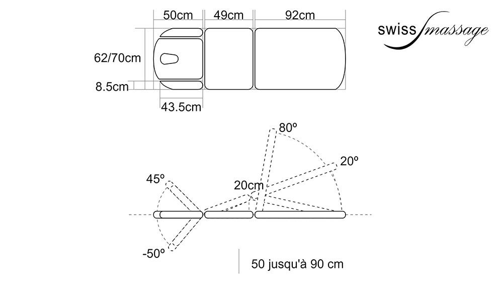 Fonctionnalités motorisées Hauteur de 50 cm à 90 cm