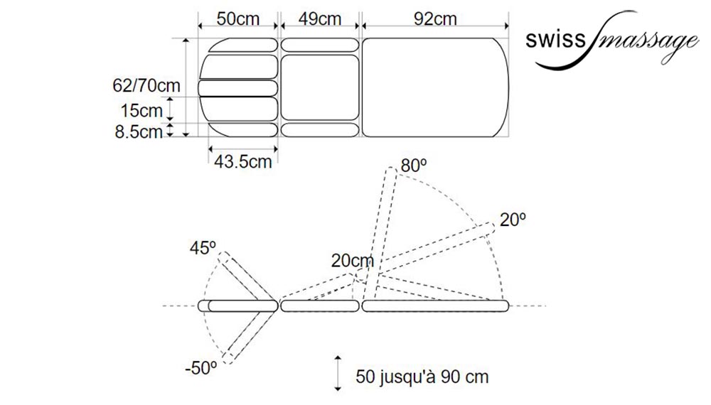 Fonctionnalités motorisées Hauteur de 50 cm à 90 cm