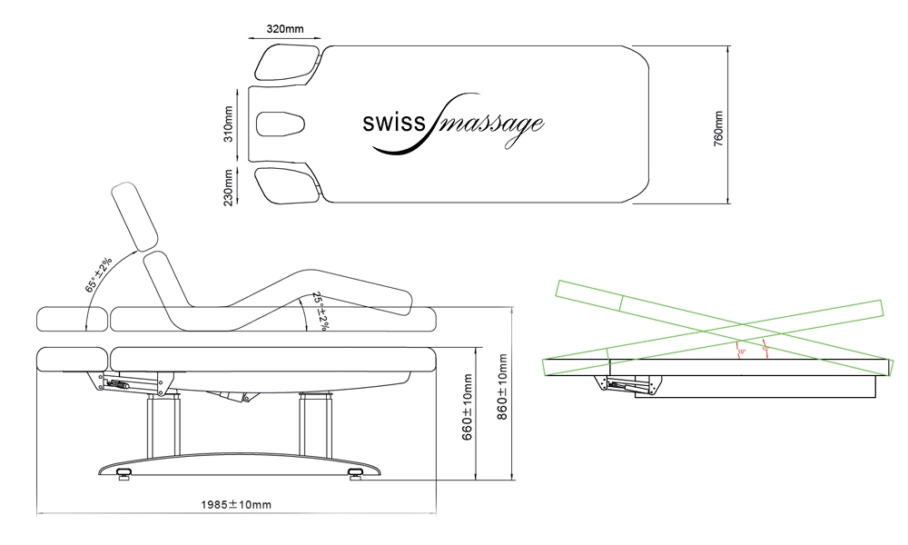 Dont 2 moteurs pour le réglage de la hauteur de la table de massage de 68cm à 88cm.