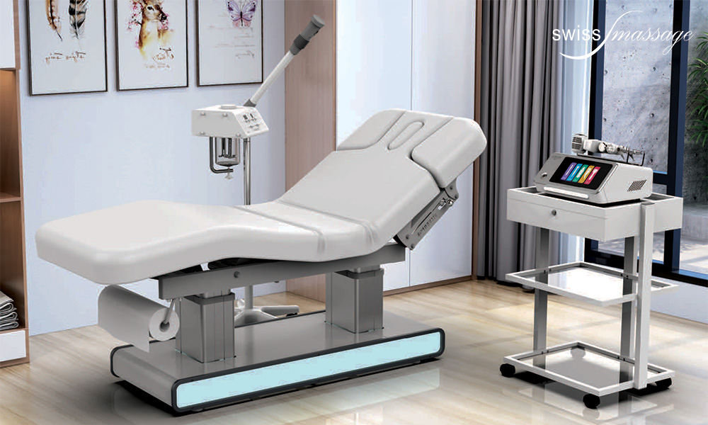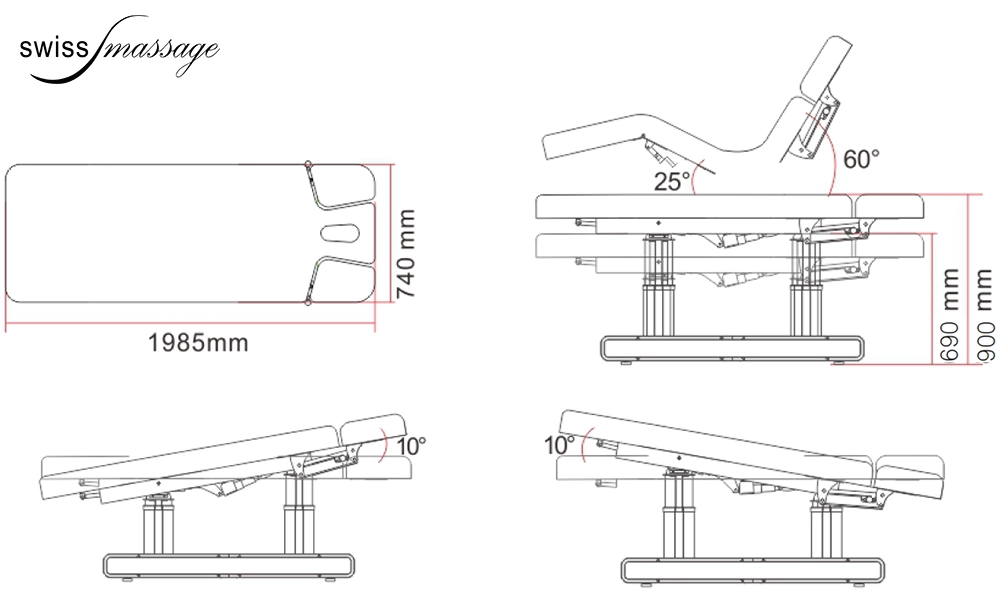 Table de SPA, avec 4 moteurs qui règlent la hauteur, l’inclinaison du dossier, du repose-jambes et l’inclinaison.