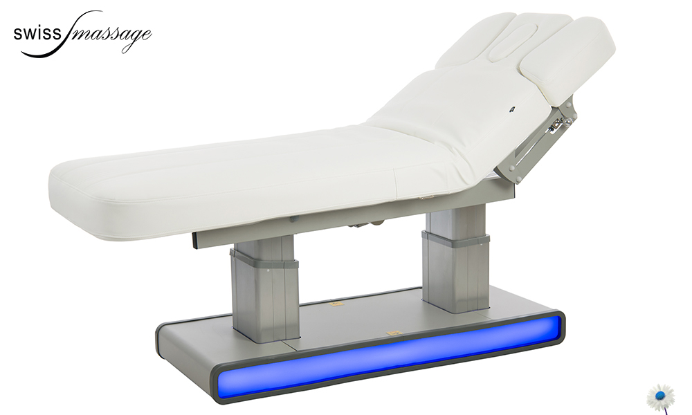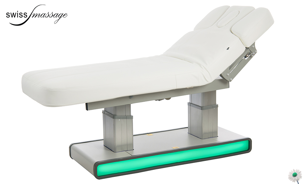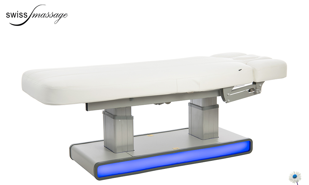 Base avec système d’éclairage LED aux couleurs de l’arc en ciel interchangeables créant une ambiance changeante s’adaptant à chaque thérapie ou soins.