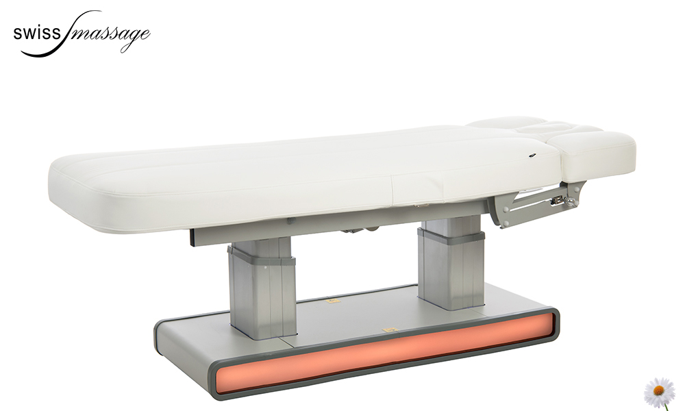 Une natte chauffante intégrée procure une sensation de bien-être, bien que non thérapeutique. Pour un usage thérapeutique, une couverture chauffante réglable est recommandée. La table, adaptée aux environnements haut de gamme, est conçue pour offrir un confort maximal et répondre aux besoins des clients les plus exigeants dans les environnements de spa et de bien-être haut de gamme.
